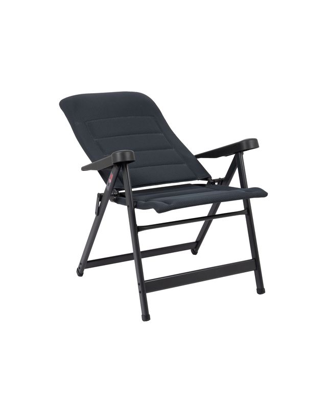 Ein einzigartiger und sehr kompakter Stuhl. Der Stuhl ist mit einem gepolsterten 3D-Stoff ausgestattet. Die komfortable Polsterung des Stoffs ist besonders luftdurchlässig und hält, aufgrund der offenen Zellstruktur, keine Feuchtigkeit zurück. Dadurch trocknet dieser Stuhl deutlich schneller als Stühle mit herkömmlicher Schaumstoffpolsterung. Dieser Stuhl hat einen niedrigeren Sitz und eine kürzere Rückenlehne. Somit ist dieser Stuhl ideal für Menschen mit kürzeren Beinen. Er bietet dank der in 7 Stufen verstellbaren Rückenlehne maximalen Komfort. Sowohl die Rückenlehne als auch die Armlehnen sind ergonomisch geformt. Der Stuhl ist mit einem eloxierten H-Rahmen ausgestattet, der extra Stabilität und Sicherheit gewährleistet. Durch sein einzigartiges Design und die niedrigere Sitzfläche ist dieser Stuhl sehr kompakt und leicht zu transportieren.